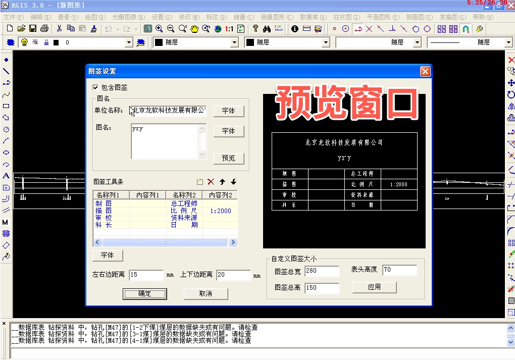 现有数据库生成剖面图出错,未弹出下一级窗口图签设置