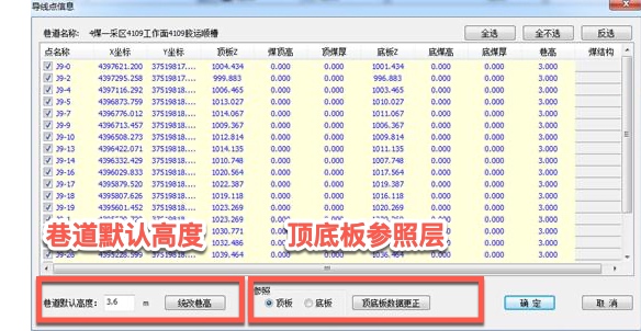 - 巷道顶底板最值:系统自动根据所选数据搜索最大值和最小值。